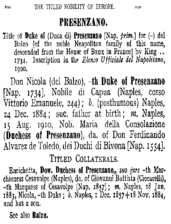 Presenzano - Duke of (Nap. 1734) Duca di Presenzano