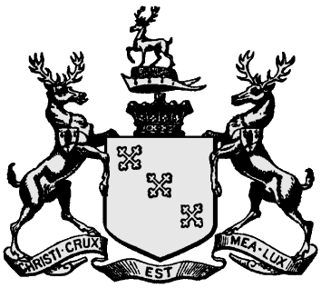 SUPPORTERS: Dexter, an antelope; sinister, a stag, both arg., attired, ppr., unguled or, each gorged with a collar, chequy of the last, or and az., chained, gold.
