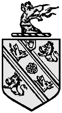 ARMS: Az, on a bend, arg., cotised, or, between two demi-lions rampant, erm., a rose, gu., seeded and leaved, ppr., between two boars' heads, couped, sa., langued of the fifth.